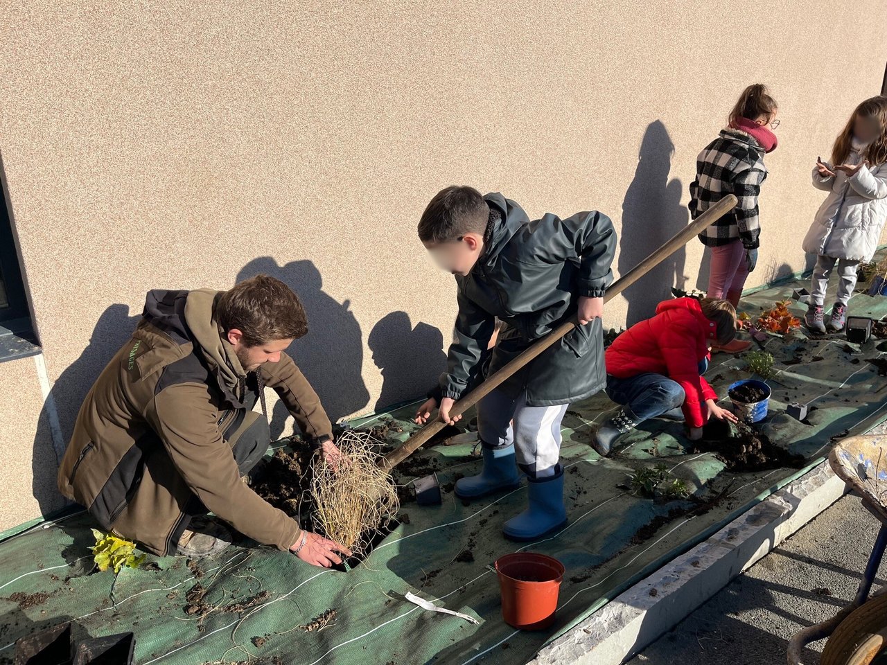 Le 3 mars, les enfants ont mis la main à la terre 🌱👫 pour contribuer directement à leur future cour !