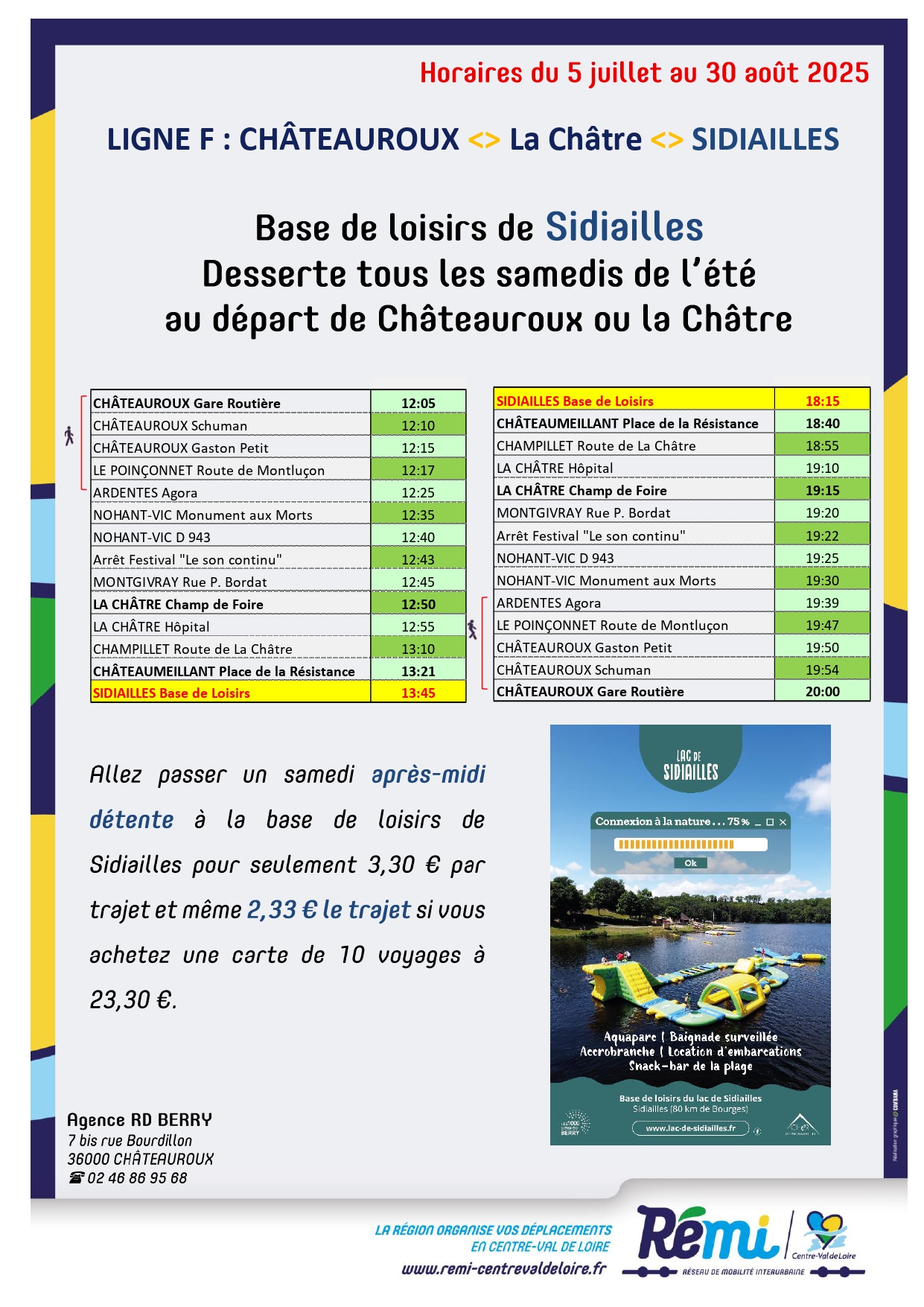 Nouveauté pour cet été, desserte de la base de loisirs de SIDIAILLES tous les samedis.